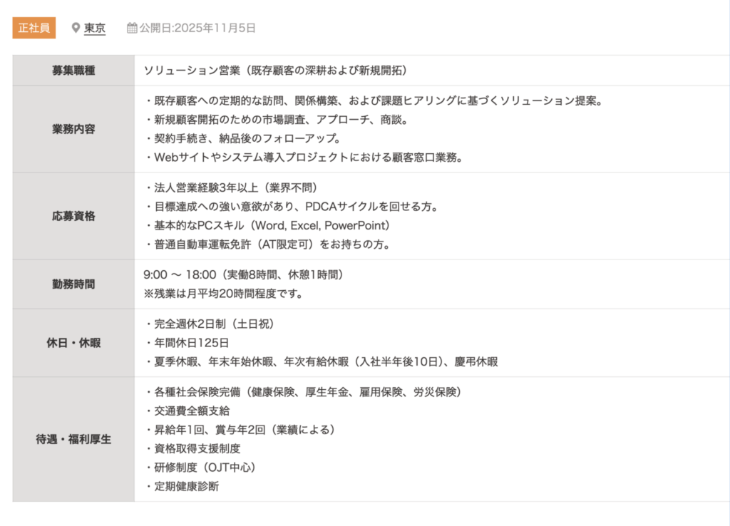 新規求人の登録や、現在募集している求人情報の管理を行うための管理側の画面です。