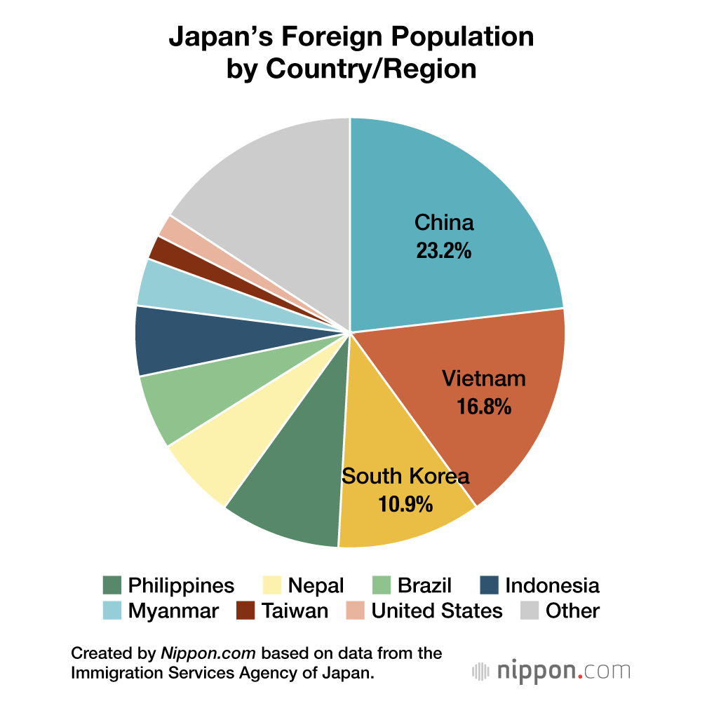 外国人居住者の人口は、2024年末時点で過去最高の376万人に達し、労働力不足を背景に増加しています。
