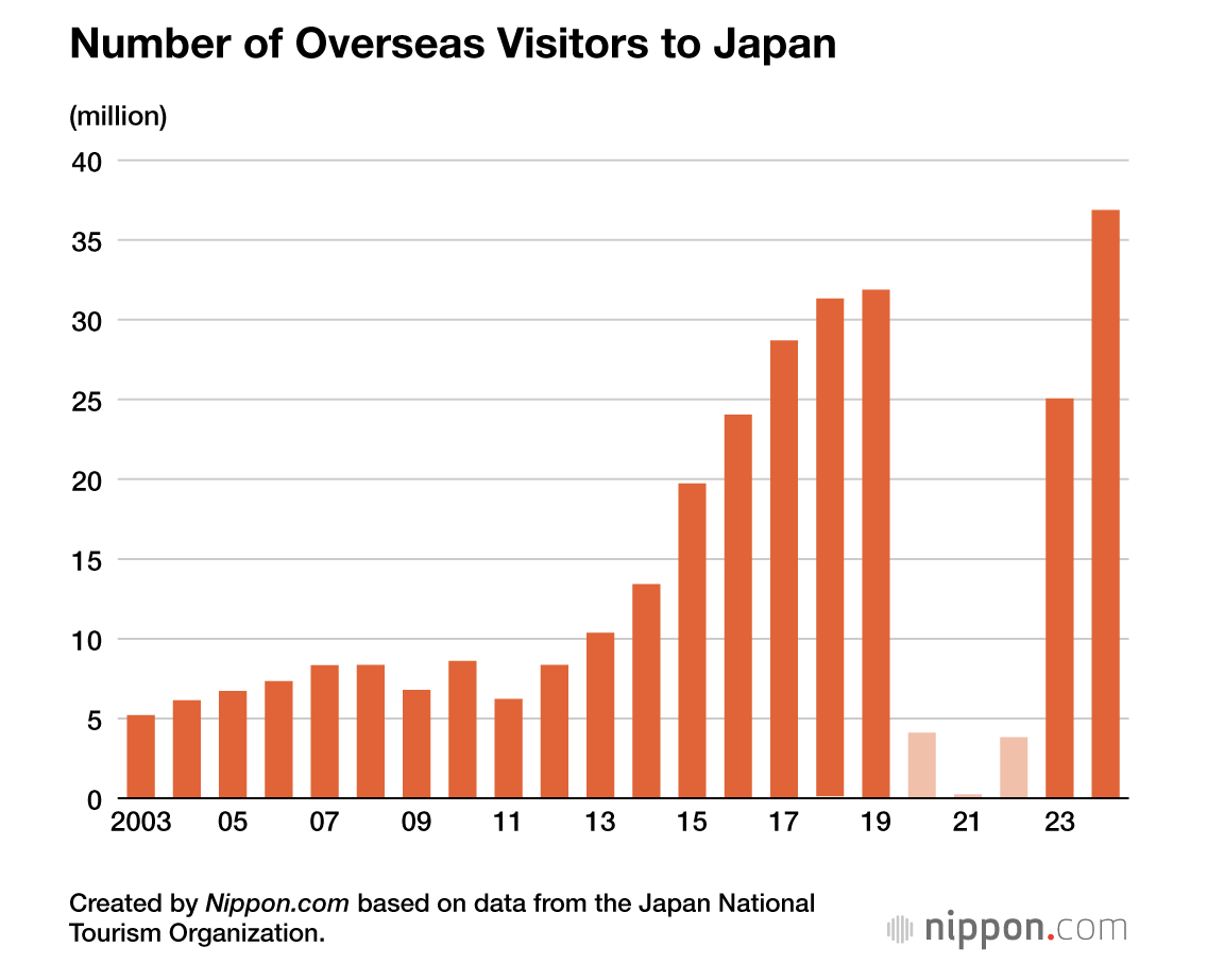 また、インバウンド(訪日客)もコロナ後回復しており、2024年の年間実績では過去最高を更新。訪日客数は3,687万人、旅行消費額は初めて8兆円を超えました。